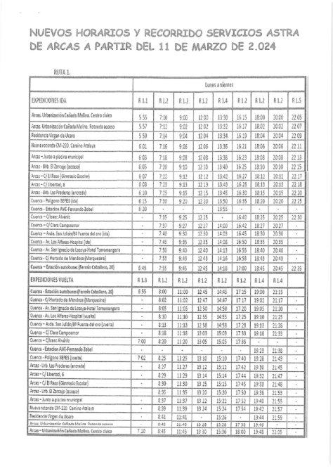 A partir del próximo lunes 11 de marzo estos serán los nuevos horarios de y recorridos del Plan Astra en Arcas, que incluyen parada nueva en la rotonda de acceso del Barrio de Cañada Molina y Barrio San Martín.